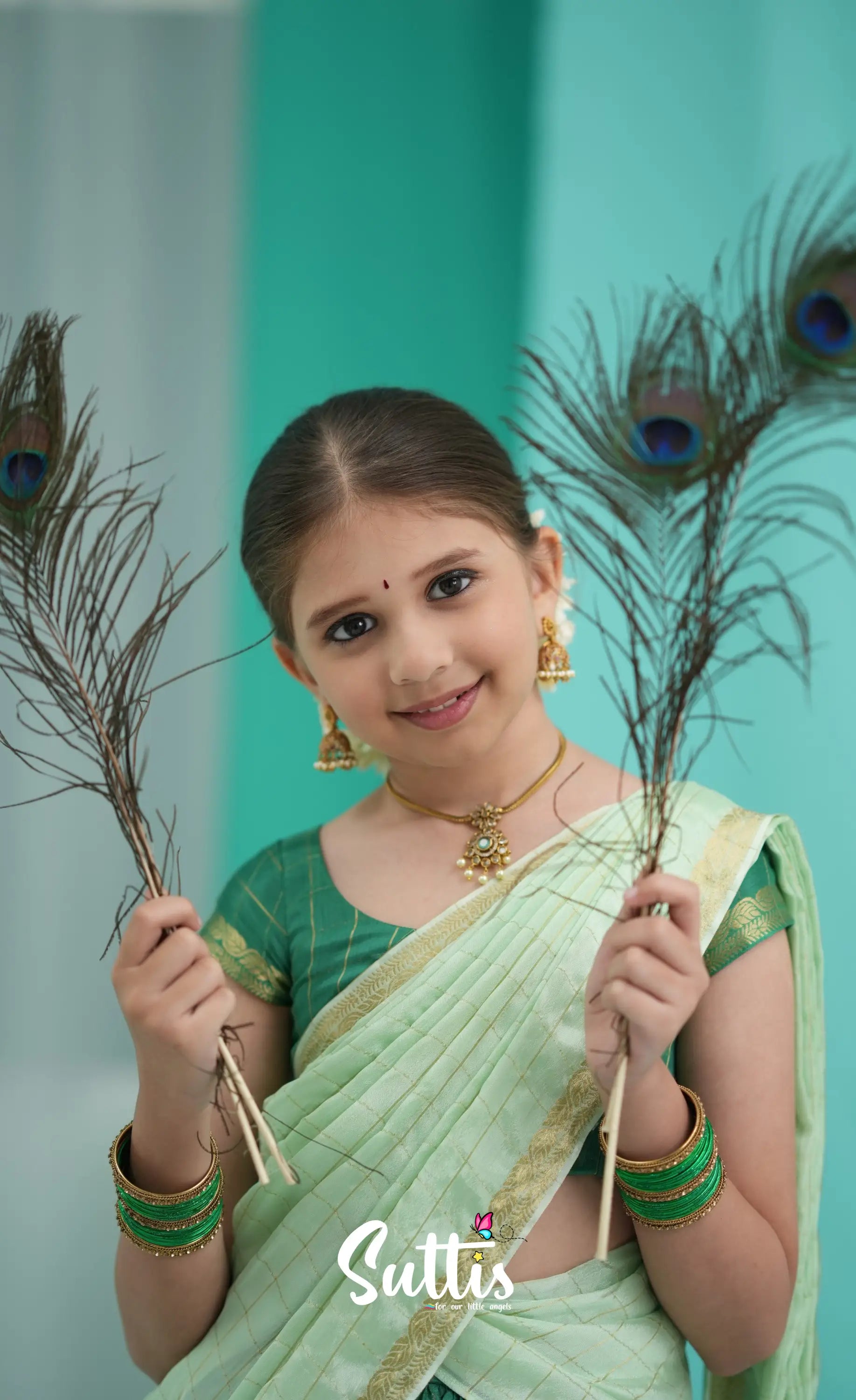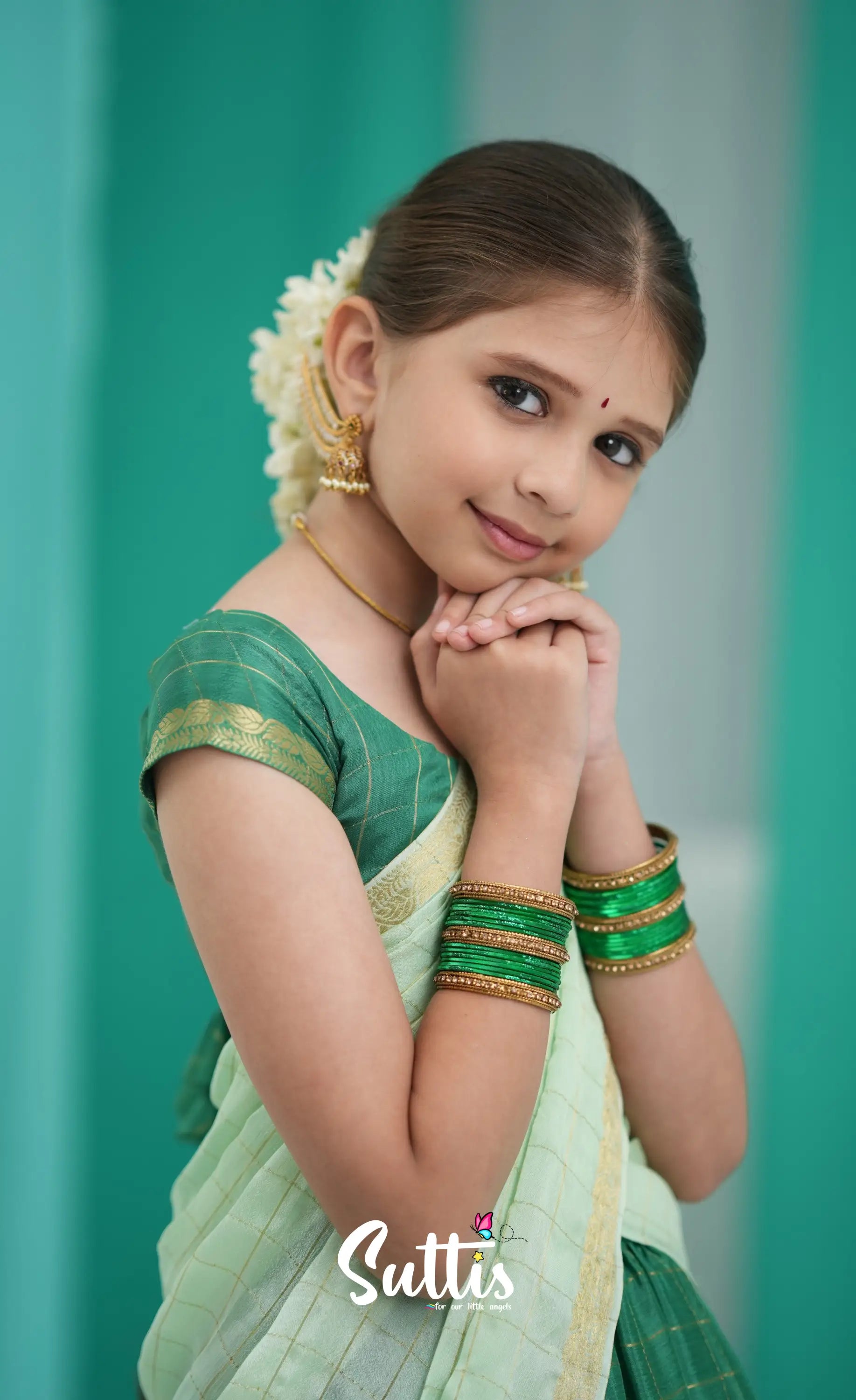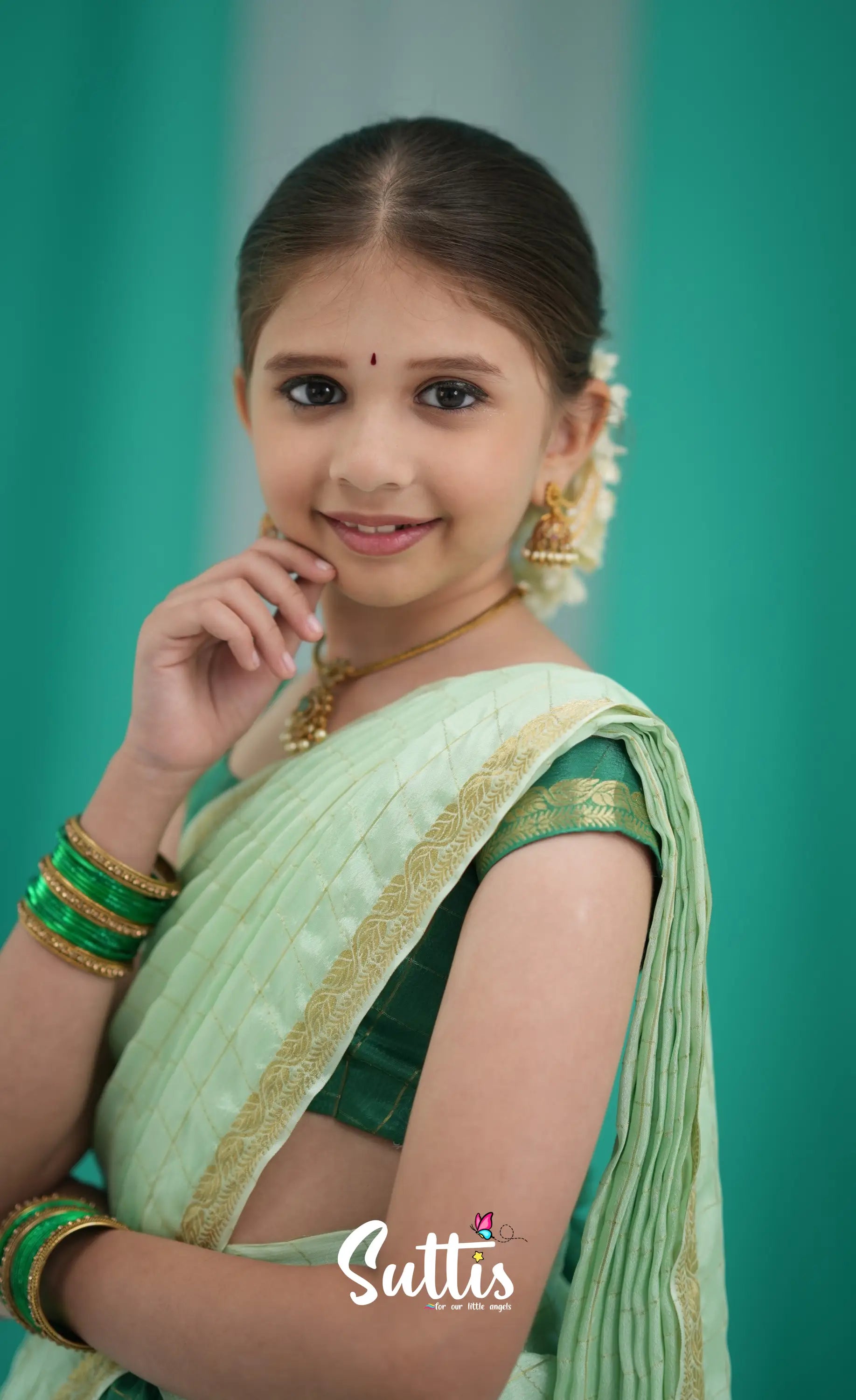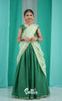Dark Green and Pastel Green Chinnon Halfsaree