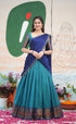 Padmaja Cotton Half Saree - Teal Blue and Dark Blue