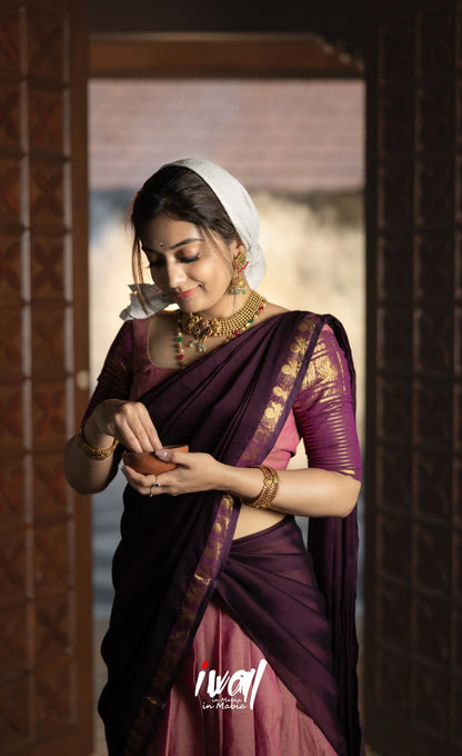 Mauve and Dark Plum Cotton Halfsaree