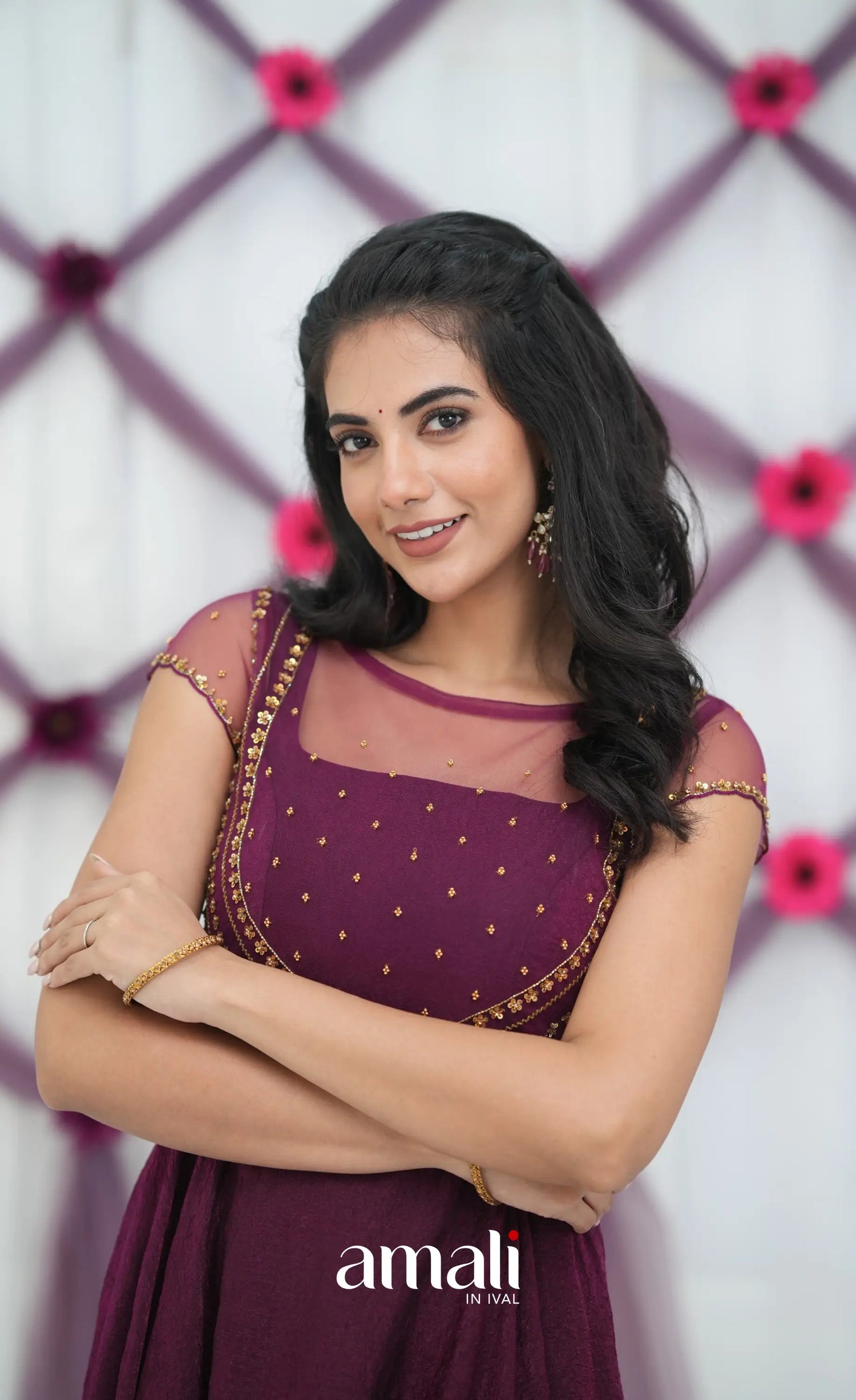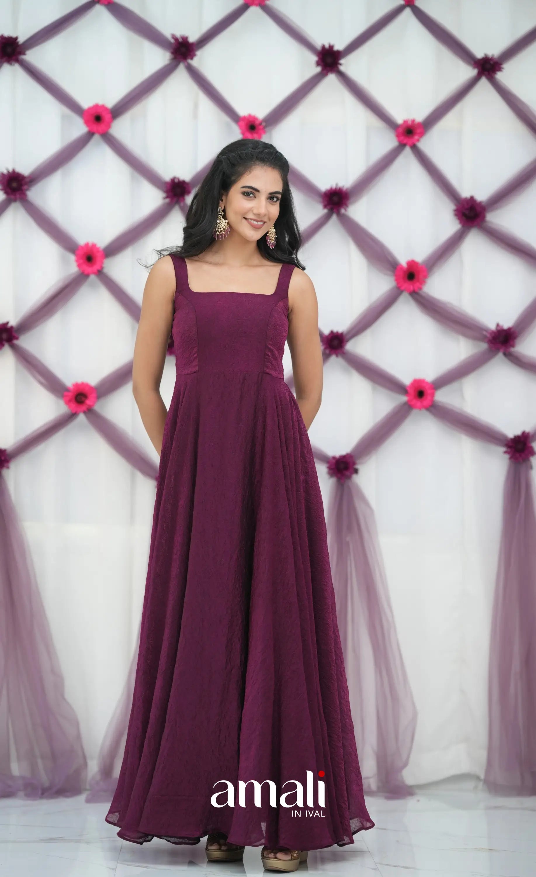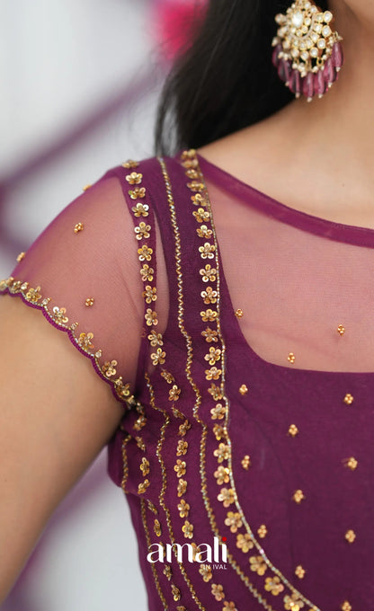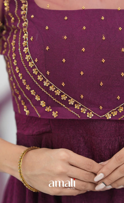 Wine Aari Handworked Anarkali Anarkalis