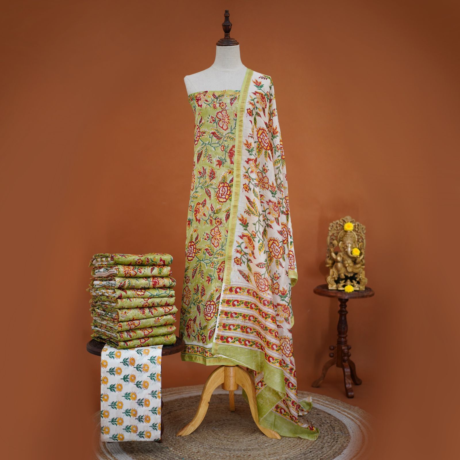 Cotton Pavadai Sattai - Orange and Red- Regular price