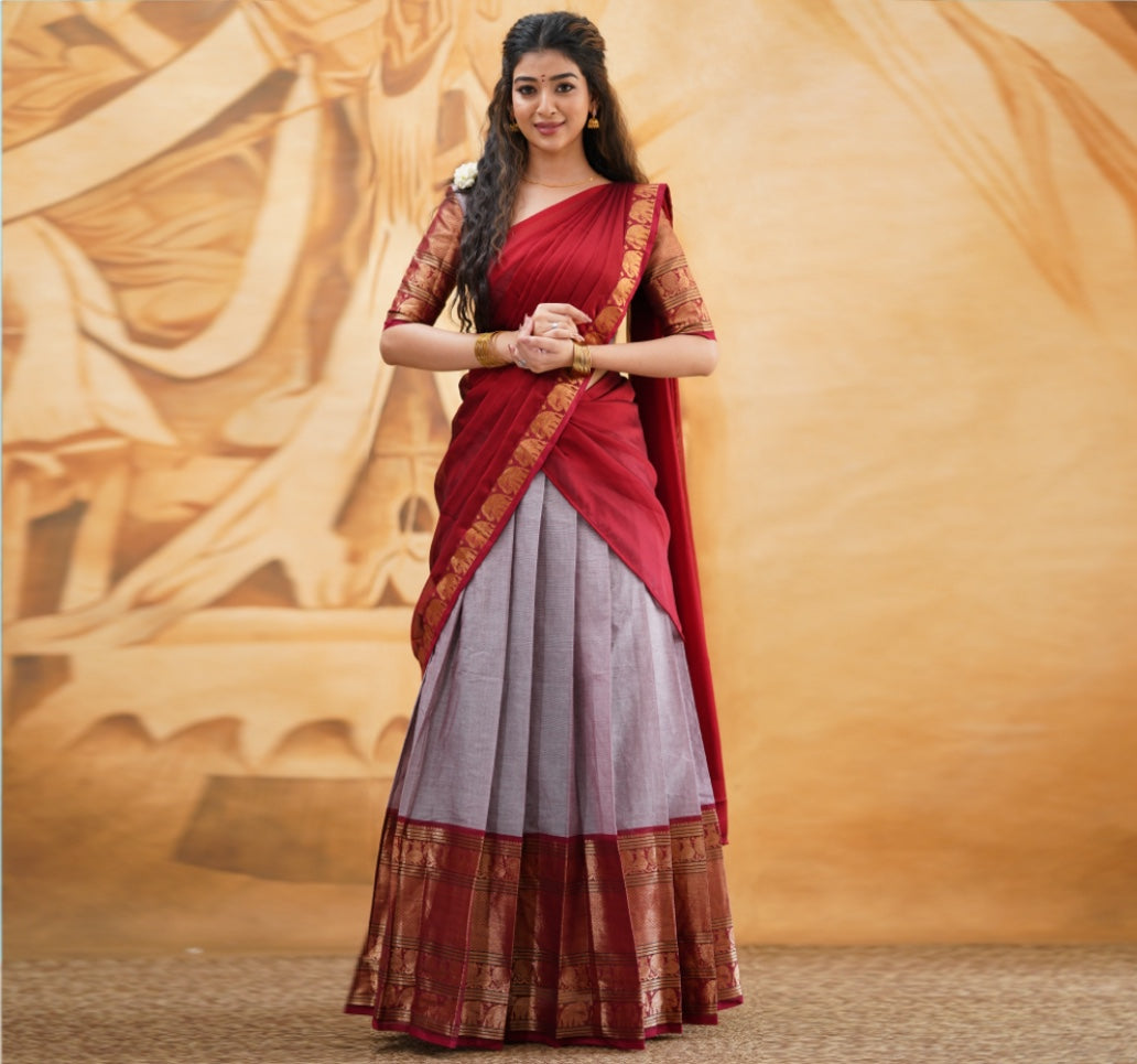 Padmaja Cotton Half Saree - Mauve and Dark Plum